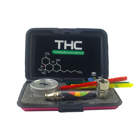 THC set, vďaka ktorému budeš mať všetko potrebné pokope. Set obsahuje kovovú fajku, ktorú po použití ľahko rozoberieš a vyčistíš priloženými fajkovými tyčinkami a mini kefkou. V balení nájdeš aj 5 kusov náhradných oceľových sitiek a hliníkovú nádobku s priesvitným viečkom na odloženie materiálu. Praktický set, na každú príležitosť, zmestí sa ti do vrecka.