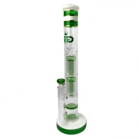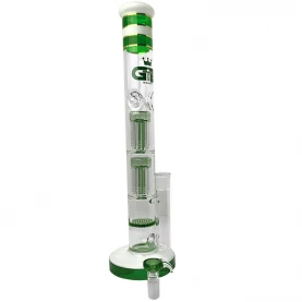 Vodné bongo od známeho výrobcu bong Grace Glass je robustné bongo z hrubého skla s ťažkým a stabilným postavcom (v prípade zombie apokalypsy ho môžeš použiť aj ako zbraň). Bongo má všetky možné vychytávky o ktorých sa ti ani len nesnívalo. Vnútro je vybanené dvomi jellyfish coolermi a honeycomb coolerom, vďaka ktorým budú šluky z bonga jemné a neodolateľne lahodné. Už žiadne škriabanie v krku a záchvaty dusivého kašla! Pre skutočne mrazivý efekt môžeš použiť ľadovač tak, že do jeho výstupkov necháš pomaly skĺnuť pár kociek ľadu. Bongo má zabudovaný downpipe, čo určite ocenia rozbíjači bong a nekoneční hľadači náhradných dielov. Vo výbave nechýba ani kotlík s priemerom zábrusu NS19, so zabudovanou rúčkou, aby si si pri nakladaní či vyklepávaní nespálil prstíky. Na zhrubnutý náustok komfortne prisaješ pery - ani kúsok dymu nazmar!