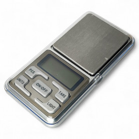 Malá veľmi citlivá váha na jedno desatinné miesto s krytom, ktorý slúži aj ako tácka. Rozmery 6x8 cm.