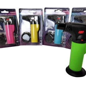 Tryskový zapaľovač Zenga Torch Jet Candy s detskou poistkou, odnímateľným podstavcom a nastaviteľnou intenzitou plameňa.