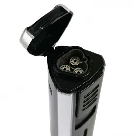 Tryskový zapaľovač vybavený tromi tryskami pre komfortné zapálenie hrubších cigár. Kvalitný zapaľovač plniteľný klasickým plynom do zapaľovačov.